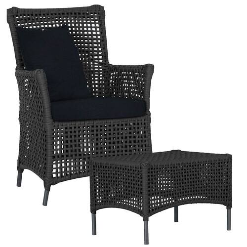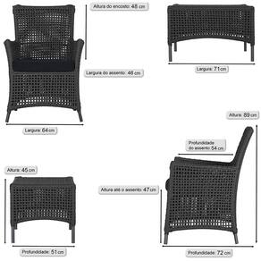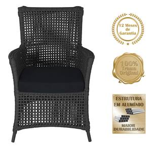 Itens Inclusos: 01 Poltrona e 01 Mesa Igapó em Alumínio Pintura Preta Corda Náutica Estofado 12