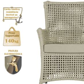 A corda náutica adiciona um toque de rusticidade moderna, enquanto o estofado impermeável garante que sua poltrona esteja sempre impecável, mesmo após uma chuva inesperada ou um acidente com líquidos.