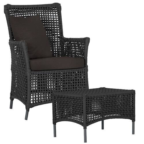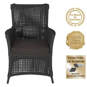 Itens Inclusos: 01 Poltrona e 01 Mesa Igapó em Alumínio Pintura Preta Corda Náutica Estofado 9