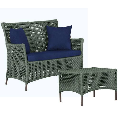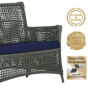 1 Sofá Área e Mesa Igapó Alumínio Pintura Marrom Corda Náutica Estofado Impermeável Almofada 10 Trama - Verde