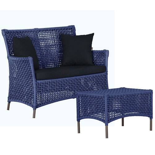 1 Sofá Área e Mesa Igapó Alumínio Pintura Marrom Corda Náutica Estofado Impermeável Almofada 12 Trama - Azul