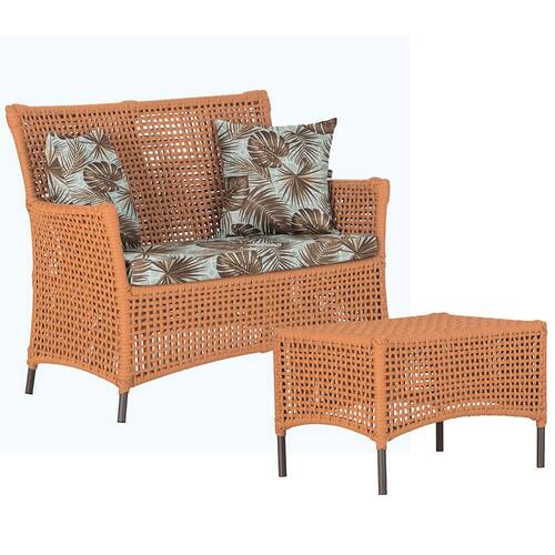 1 Sofá Área e Mesa Igapó Alumínio Pintura Marrom Corda Náutica Estofado Impermeável Almofada 6 Trama - Laranja