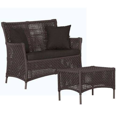 1 Sofá Área e Mesa Igapó Alumínio Pintura Marrom Corda Náutica Estofado Impermeável Almofada 9 Trama