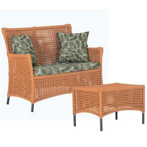 1 Sofá Área e Mesa Igapó Alumínio Pintura Preta Corda Náutica Estofado Impermeável Almofada 5 Trama - Laranja