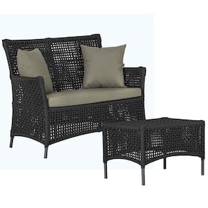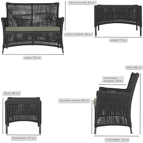 1 Sofá Área e Mesa Igapó Alumínio Pintura Preta Corda Náutica Estofado Impermeável Almofada 8 Trama - Preto