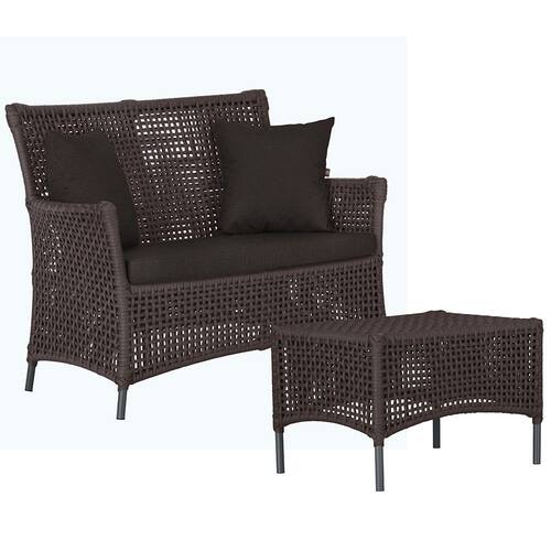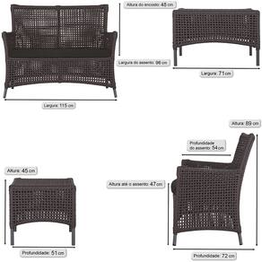 1 Sofá Área e Mesa Igapó Alumínio Pintura Preta Corda Náutica Estofado Impermeável Almofada 9 Trama - Marrom Chocolate