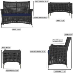 1 Sofá Área e Mesa Igapó Alumínio - Preto