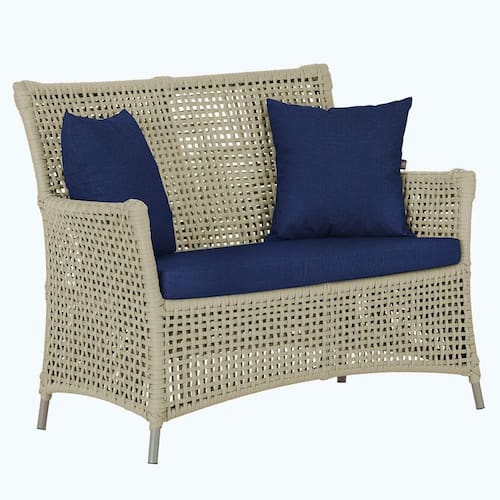 A corda nautica adiciona um toque de rusticidade moderna, enquanto o estofado impermeavel garante que sua Sofa esteja sempre impecavel, mesmo apos uma chuva inesperada ou um acidente com liquidos.