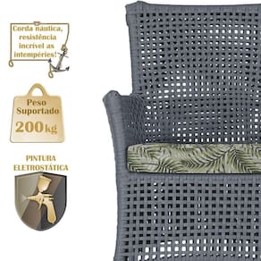 A corda nautica adiciona um toque de rusticidade moderna, enquanto o estofado impermeavel garante que sua Sofa esteja sempre impecavel, mesmo apos uma chuva inesperada ou um acidente com liquidos.