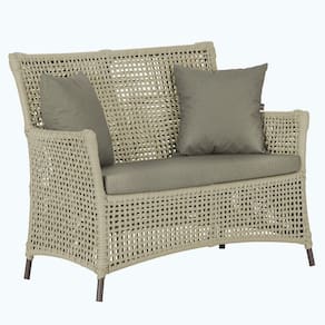 A corda nautica adiciona um toque de rusticidade moderna, enquanto o estofado impermeavel garante que sua Sofa esteja sempre impecavel, mesmo apos uma chuva inesperada ou um acidente com liquidos.