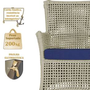 A corda náutica adiciona um toque de rusticidade moderna, enquanto o estofado impermeável garante que sua Sofá esteja sempre impecável, mesmo após uma chuva inesperada ou um acidente com líquidos.