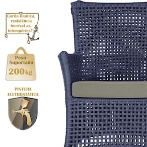 A corda n?utica adiciona um toque de rusticidade moderna, enquanto o estofado imperme?vel garante que sua Sof? esteja sempre impec?vel, mesmo ap?s uma chuva inesperada ou um acidente com l?quidos.