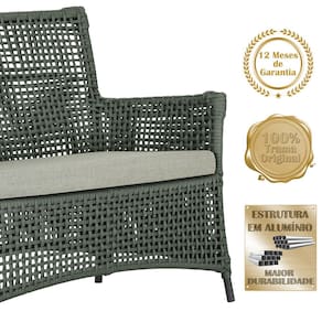 1 Sofá Área Externa Igapó Alumínio Pintura Preta Corda Náutica Estofado Impermeável 3 - Verde Musgo