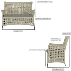 1 Sofá Área Externa Igapó Alumínio Pintura Preta Corda Náutica Estofado Impermeável 7 - Bege Médio