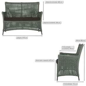 1 Sofá Área Externa Igapó Alumínio Pintura Preta Corda Náutica Estofado Impermeável 9 - Verde Musgo