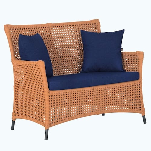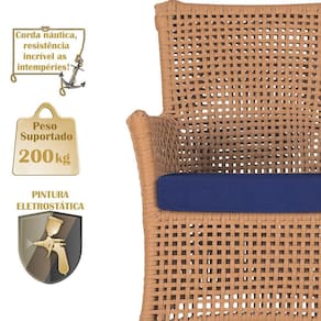 A corda nautica adiciona um toque de rusticidade moderna, enquanto o estofado impermeavel garante que sua Sofa esteja sempre impecavel, mesmo apos uma chuva inesperada ou um acidente com liquidos.