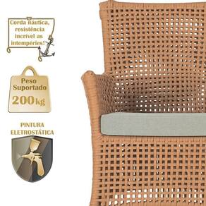 A corda nautica adiciona um toque de rusticidade moderna, enquanto o estofado impermeavel garante que sua Sofa esteja sempre impecavel, mesmo apos uma chuva inesperada ou um acidente com liquidos.