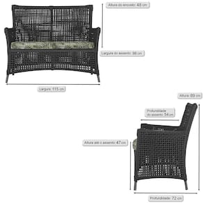 Itens inclusos: 01 Sofa Area Externa Igapo Aluminio Pintura Preta Corda Nautica Estofado Impermeavel 5