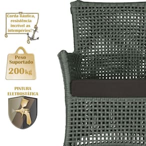 Itens inclusos: 01 Sofa Area Externa Igapo Aluminio Pintura Preta Corda Nautica Estofado Impermeavel 9