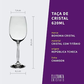 1 taça de cristal para água 620 ml linha chanson bohemia Taça de cristal para água com 620 ml da linha chanson bohemia crystal Resistência titânio e cristal ecológico Detalhes do produto Material: cristal com titânio, mais resistente que o cristal comum Origem: produto da república tcheca Produto: taça de cristal Quantidade: 01 taça Capacidade: 620 ml Tamanho: 26,3 cm de altura, 7,4 cm de diâmetro de bocal e 8,1 cm de diâmetro de base Marca: bohemia crystalex Linha: chanson Embalagem: o produto é cuidadosamente envolvido por plástico bolha e inserido em uma caixa reforçada para assegurar a integridade do produto no transporte. Substituímos produtos danificados no transporte. Postamos nossos produtos nos correios de 01 a 02 após a compra. Todos os nossos produtos acompanham a impressa. Trocas e devoluções Seguimos todas as normas vigentes no código de defesa do consumidor. Adicionalmente, trocamos produtos danificados no transporte. Informações relevantes 1. Já imaginou beber ou servir suas bebidas em taças ou copos de cristal com classe e sofisticação A elleganza cristais comercializa produtos com preços excepcionalmente abaixo do mercado, de qualidade assegurada pela marca tcheca bohemia crystal. Após anos de pesquisa e desenvolvimento, distribui em mais de 100 países cristal de espessura bem fina, livre de componentes tóxicos, com design e transparência incríveis. 2. Mas cristal não quebra facilmente Não. O cristal com titânio é muito mais resistente a impactos e mudanças de temperatura se comparado ao cristal comum, proporcionando maior segurança e comodidade no manuseio. A elleganza cristais trabalha apenas com produtos contendo titânio em sua composição, trazendo excelência e qualidade a preços imbatíveis. Sobre a bohemia crystal A bohemia crystal é líder global no mercado de cristais, com atuação em mais de 100 países. Fabrica seus produtos na república tcheca, realiza altos investimentos no desenvolvimento e melhoramento de seus produtos para garantir-lhes qualidade de ponta e ser referência global em sofisticação. eles foram os precursores do movimento que tornou o cristal um material ecológico, sem componentes tóxicos. Também se destacam de outras marcas ao adicionar titânio para seus produtos mais especiais e assegurar resistência muito superior ao convencional. a marca oferece aos seus clientes uma vasta gama de produtos, desde utensílios domésticos a itens para indústria química. cada linha de produto tem sua embalagem personalizada de acordo com suas características e tamanho. Marca: Não Informado Ean: 7900929017406