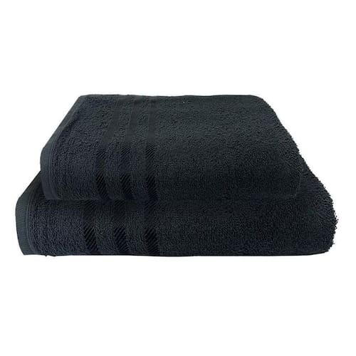 1 Toalha De Banho E 1 Rosto Preto 3 Barras 100% Algodão