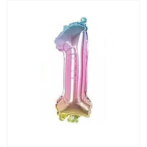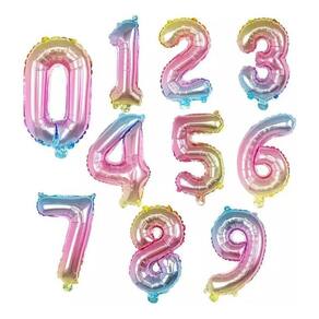 1 Un Balão Bexiga Número Metalizado Degrade Colorido 75Cm