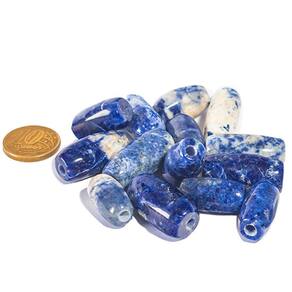 Pedra Sodalita Azul Barril Furado Longitudinal 20 a 25 mm Tipo B - Para Montagem de Artesanato A Sodalita Azul é uma pedra natural, lapidada em formato de barril, com furo longitudinal (horizontal) de aproximadamente 1 mm de espessura, ideal para montagem de colares, pulseiras, guias e pingentes. Esta pedra não vem montada em colar — é fornecida individualmente, pronta para seus projetos de artesanato. Características do Produto: Nome da Pedra: Sodalita Azul Cor: Azul com veios brancos (foto ilustrativa) Formato: Barril rolado, com furo para passagem de fios Claridade: Brilhante, com aspecto vítreo cristalizado Tamanho: Varia entre 20 a 25 mm (de acordo com o estoque) Quantidade: 10 pedras por pedido Observações Importantes: A foto é meramente ilustrativa, podendo haver variações na coloração e textura devido à luz do estúdio e ao processo natural da pedra. Devido à alta demanda, o prazo de lapidação e furação pode variar entre 3 a 15 dias. Compre apenas se concordar com este prazo. Ideal para: Criação de joias e acessórios artesanais Montagem de colares, pulseiras e pingentes personalizados Adquira a sua pedra de Sodalita Azul e adicione um toque natural e elegante aos seus projetos! Marca: CristaisdeCurvelo