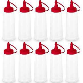 10 Bisnagas Plásticas Flexível para Lanchonetes Frascos de Molhos Ketchup Bico Vermelho.