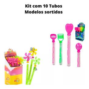 Conteúdo: 10 Tubos bolha sabão (modelo catavento ou talher - envio conforme disponibilidade)