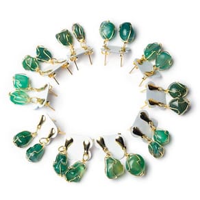 Feito com carinho, este brinco une o charme do Ágata Verde rolado e polido com um design rústico-chique: um delicado cesto amarradinho artesanal, montado manualmente. Um acessório com alma, perfeito para quem ama estilo com boas vibrações. A estrutura recebe um dourado sobre metal niquelado, trazendo um brilho suave e elegante que realça a beleza da pedra. Detalhes da Peça