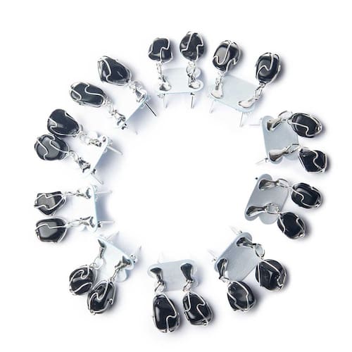 Este brinco combina o brilho intenso da Obsidiana Negra rolada e polida com um design chique e artesanal: um delicado cesto amarradinho, montado manualmente. Um acessório com presença forte e elegante, ideal para quem busca estilo com proteção energética e um toque de mistério. A base metálica recebe acabamento prateado sobre metal niquelado, criando um contraste sofisticado que realça o negro profundo e vítreo da pedra. Detalhes da Peça