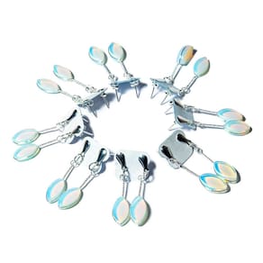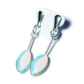 Pedra: Pedra da Lua Opalina, com tonalidade branca opalada que reflete delicadamente a luz. Corte: Lapidação Navete, cuidadosamente feita à mão para destacar sua forma e brilho. Claridade: Semi-brilhoso, oferecendo um toque suave e encantador de luminosidade. Medidas: