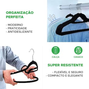 - Antideslizante: O veludo evita que as roupas escorreguem.