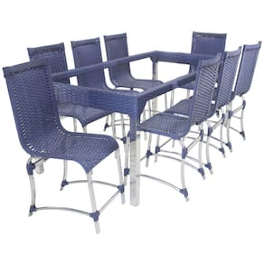10 Cadeiras Haiti E Mesa De Jantar 240x100 Alumínio Azul Dark