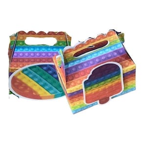 10 Caixinha formato maletinha com fechamento de encaixe, não necessita de cola para a montagem. 10 aplique com formato variado combinando com o tema