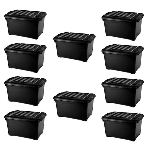 10 caixas organizadoras 25 litros preta com travas e rodinhas 10 caixas organizadoras 25l black com travas e rodinhas