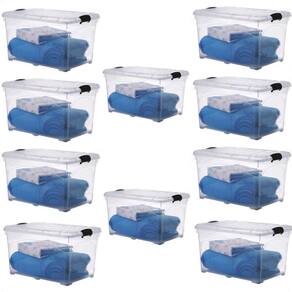 10 caixas organizadoras 95 lts transparente com travas e rodinhas 10 caixas organizadoras 95l transparente com travas e rodinhas