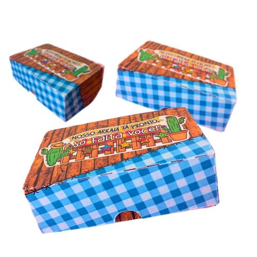 Deixe sua Festa Junina ainda mais charmosa com as Mini Caixas Kibunitinho Perfeitas para embalar paçoquinhas, brigadeiros, docinhos, lembrancinhas e pequenos mimos, nossas mini caixas trazem toda a alegria e tradição da festa para sua mesa. Com design exclusivo e 5 opções de estampas temáticas juninas, impressão de alta qualidade em papel offset 240g fosco e acabamento impecável, elas dão um toque especial à sua celebração. O kit inclui: 10 mini caixas desmontadas com a mesma estampa você escolhe a estampa no momento da compra Dimensões: 8cm comprimento x 5cm largura x 2cm altura - ideal para 3 paçoquinhas Características: Impressão de alta qualidade em papel offset 240g fosco 5 opções de estampas temáticas juninas vibrantes e acabamento gráfico fosco Montagem fácil e rápida por encaixe sem necessidade de cola Versatilidade para embalar paçoquinhas, brigadeiros, docinhos, lembrancinhas e pequenos mimos P: As caixas são enviadas montadas R: Não, as caixas são enviadas desmontadas para garantir que cheguem intactas até você. A montagem é simples e rápida, sem necessidade de cola. P: Posso escolher a estampa da caixa R: Sim Oferecemos 5 opções de estampas juninas exclusivas. Selecione a sua preferida no momento da compra. P: As paçoquinhas acompanham as caixas R: Não, as paçoquinhas não acompanham as caixas. P: Posso personalizar as caixas com meu logo Encante seus convidados com embalagens criativas e cheias de tradição Marca: Não Informado Ean: 7901612682819