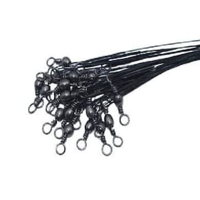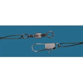 Chicotes em cabo de aço com Snap reforçado e girador para ser utilizado como Leader em peixes com dentição ou em locais com pedras e troncos evitando o rompimento, produto de primeira qualidade, extremamente resistente e disponíveis na cor black. - Completo com Girador e Snap. - Troca rápida de anzol. - Indicado para rios e mares.