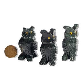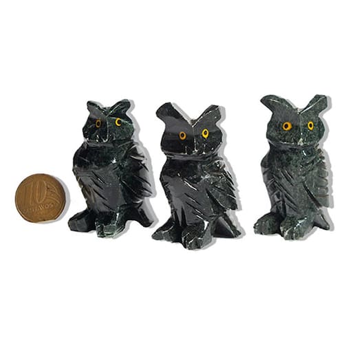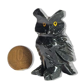 Escultura de Coruja em Pedra Dolomita Preta - Artesanato Exclusivo e Elegante Adicione um toque de elegância e sofisticação à sua decoração com esta escultura de coruja em pedra dolomita preta. Lapidada manualmente, a peça oferece um acabamento refinado e simbólico. A coruja é conhecida por representar sabedoria, mistério e inteligência, sendo um símbolo perfeito para embelezar qualquer ambiente. Destaques do Produto: Pedra: Dolomita natural autêntica. Cor: Preto intenso (variações naturais podem ocorrer). Dimensões: Aproximadamente 5,5 x 2 x 3 cm, uma peça compacta e delicada. Peso: Cerca de 50 g, leve e de fácil manuseio. Corte: Lapidação manual, com artesanato minucioso. Acabamento: Brilho suave de verniz, proporcionando uma textura lisa e agradável ao toque. Origem: Pedra e montagem artesanal de Curvelo, MG. Por que escolher esta escultura? Exclusividade: Cada peça é única, com variações naturais de cor e grafismos, além de pequenas inclusões características das pedras autênticas, dando um charme rústico e exclusivo. Decoração simbólica: A coruja é o símbolo da sabedoria e da inteligência, sendo uma excelente escolha para decorar escritórios, salas de estar ou espaços pessoais. Presente ideal: Além de ser uma peça decorativa sofisticada, esta escultura é uma ótima opção de presente para pessoas que apreciam arte natural e artesanato de qualidade. Atenção: Por ser feita de pedra natural, as tonalidades e grafismos podem variar ligeiramente. Algumas inclusões naturais podem se assemelhar a fissuras, mas são características normais de minerais genuínos de garimpo. A pedra recebe hidratação com óleo mineral para garantir seu brilho e durabilidade. Garanta já sua escultura de coruja em pedra dolomita preta e adicione uma peça de significado e elegância à sua coleção de decoração. Marca: CristaisdeCurvelo