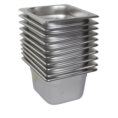 Kit com 10 cubas GN 1/6 de 65mm. Ideal para molhos, frios e condimentos em buffets dinâmicos e bem organizados.