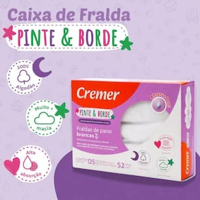 1 Caixa com 5 Fraldas de Pano Cremer Modelo Pinte e borde 70x70cm