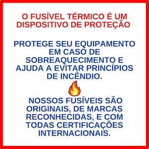 Lote com 10 unidades de fusível térmico para motor ventilador 130ºc 2a 250v Trabalha em qualquer tensão entre 0 e 250v 12v/110v/127v/220v Fusível de ótima qualidade da marca aupo modelo a4-f 2a Para motor de ventilador e demais tipos de motores elétricos. É utilizado para proteger a bobina do motor de superaquecimento. Verifique a temperatura do fusível do seu aparelho. Para economizar no adicione mais unidades no mesmo pedido ou acrescente ao carrinho mais produtos da nossa loja. Perguntas frequentes: Posso substituir o fusível queimado por um de temperatura muito mais alta Não, o fusível térmico protege seu equipamento de superaquecimento, se for substituído por uma temperatura muito maior seu dispositivo corre o risco de não suportar o aquecimento em caso de defeito. Posso substituir por uma temperatura próxima Sim, desde que não seja uma temperatura muito mais baixa ou muito mais alta pode ser substituído sem problemas, sempre dê preferência para substituir por um de temperatura um pouco superior. Marca: Não Informado