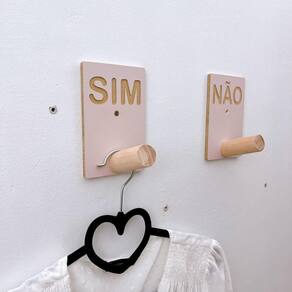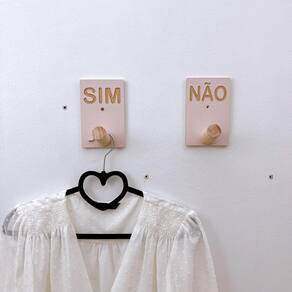 Trio de penduradores | Sim Não | com pino inclinado Ideais para uso comercial em provadores de loja, facilitando a escolha das peças e mostrando todo o cuidado que o lojista moderno tem com seus clientes!
