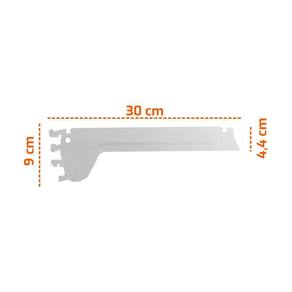 - tipo: mão francesa slg ; - modelo: new plus; - cor: branco; - marca: sa gôndolas. - medidas totais: 9cm a x 32cm l x 2mm. - peso unitário: 0,17kg.