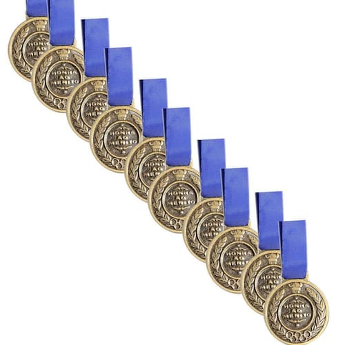10 Medalhas 2,9cm Ouro prata bronze fita vermelha