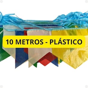 Decore a sua Festa Junina com a Bandeirinha Plástico Festa Junina Bandeirola Com um total de 10 metros de comprimento, este produto é perfeito para decorar qualquer espaço, grande ou pequeno, e trazer o espírito festivo para o seu evento.