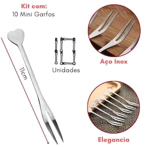 Kit com 10 mini garfos inox 11cm para petiscos. Apresentamos o kit 10 mini garfos coração inox petiscos mesa posta, a escolha perfeita para quem aprecia a elegância e a sofisticação na hora de servir. Com um design delicado em forma de coração, esses garfinhos são ideais para petiscos, proporcionando um toque especial às suas reuniões e jantares. Fabricados em inox, tanto a lâmina quanto o punho garantem durabilidade e resistência, além de serem fáceis de limpar. Com um comprimento total de 11 cm, são práticos e funcionais, adequados para qualquer tipo de mesa posta. A nilosdecor se destaca pela qualidade de seus produtos, e este conjunto não é exceção. A versatilidade dos garfos permite que sejam utilizados em diversas ocasiões, desde festas informais até eventos mais requintados, sempre com um charme inigualável. Ideal para quem valoriza cada detalhe na hora de receber amigos e familiares. Conteúdo da embalagem: 20 mini garfos inox para petisco Imagens meramente ilustrativas. ==================================== de 90 dias para defeitos de fabricação ==================================== Marca: Não Informado