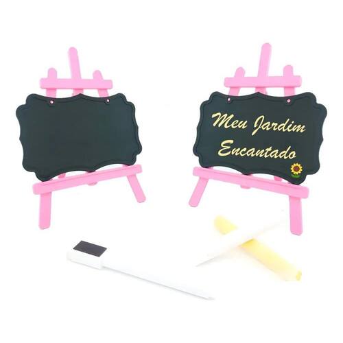 10 Mini Lousa Giz Caneta Quadro Negro Cavalete Lembr Rosa Be