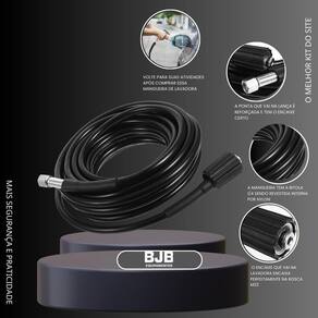Limpeza de carros, motos e caminhonetes Lavagem de quintais, calçadas e muros Ideal para áreas amplas ou de difícil acesso Adquira agora a Mangueira de Alta Pressão de 10m e leve sua lavadora de alta pressão ao próximo nível de eficiência e conveniência Compre já e facilite o seu dia a dia